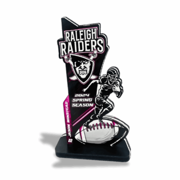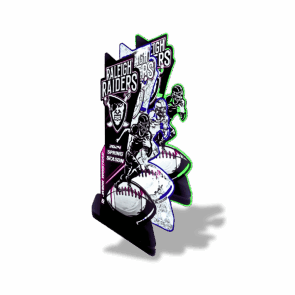 Complete with LED lights illuminating laser etchings of your team logo, mascot, or text.